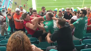 According to the person who posted the video, the fight went down with about two minutes remaining in the fourth as the Dolphins were hanging on to a 31-24 lead.