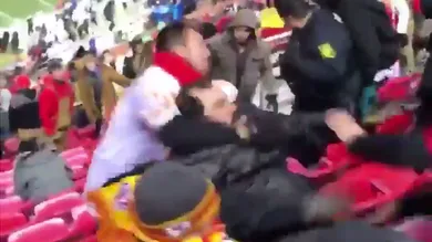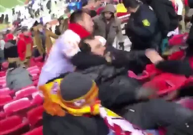 People were literally careening down from the rafters for the chance to throw sloppy haymakers at people who root for a different team than them. Cops were in the middle of the melee but even they had a hard time dispersing the crowd and had to settle by telling the lunatics to "Just go home!"