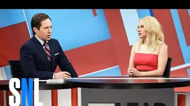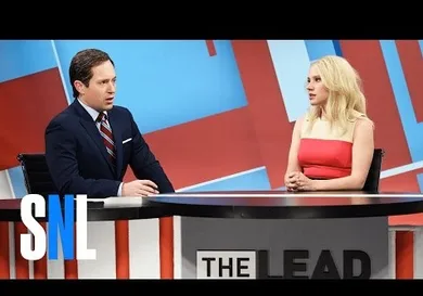 "It's almost like Mr. Trump appoints these people specifically to undermine the very agencies they head," says Tapper," to which Trump's campaign manager Kellyanne Conway (played by Kate McKinnon) responds, "No Jake, they are not bad. They are alt-good." Then Tapper announces Trump's selection for the DEA, and out comes Bryan Cranston, appearing as a surprise guest on the episode, which was hosted by John Cena.