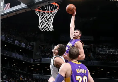Even Brook Lopez's teammates had a hard time restraining themselves after their 7-foot big man was dwarfed by Nance's Statue of Liberty slam.