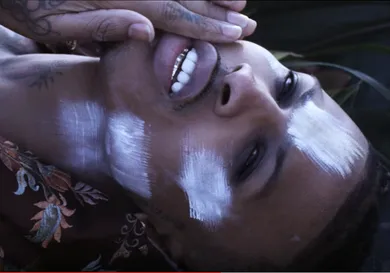 The video starts with Alsina tweaking. The intro then intersects with images of the Louisiana crooner kissing a woman in the Garden of Eden while a python threatens to make it a threesome. Next thing we know, he ends up covered in trippy war paint, stranded on a life raft in a cold wintry paradise. A gaggle of ginger models parading as nymphs surround his boat and drown him in a sea of sex.