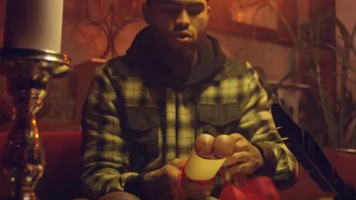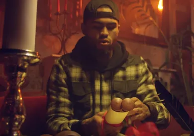 The video finds him writing his lyrics on a scroll, before setting the whole thing ablaze.