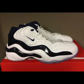 Unlike some of the new school "Olympic" basketball sneakers, Penny's Zoom Flight '96 is more toned down with a predominately white upper accompanied by navy blue accents and his Team USA #6 stitched onto the heel in gold.
