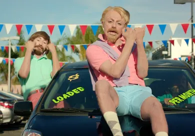 Portland rapper Aminé just proved he's got some serious comedic chops. Directing the video himself, multi-talented rapper/director sets a lighthearted tone right off the bat with an extended introduction, making it clear that the workplace toilet is sacred ground. The majority of the clip centers around three androgynous, golf attire sporting white men, looking for a car so they can ghost ride with the homies. The staff of the fictional "Quincy's" dealership watches, incredulous, while the blonde Buffalo-Bill looking dude stunts in the parking lot. Eventually, the titular red Mercedes makes an appearance.