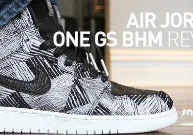 The kicks are essentially a flip of the men's colorway, with the white and black print covering the entire upper instead of just the tongue. The GS BHM 1s feature the Black History Month logo on the tongue, graphic print on the insole, a lace lock, and some silver tipped aglets.
