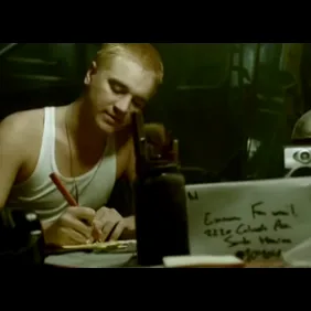 "Cleaning Out My Closet" video takes on the character of a confessional. It cuts between Eminem sitting on a dirty mattress in a garage that looks a lot like Stan's basement, Eminem shoveling dirt into an open grave in the pouring rain, and a young Eminem frightened of his abusive mother. It intensifies the feelings Eminem lays bare in the song: the resent for his mother that eats away at his core, and his resolve to be present in his daughter's life at all costs.
