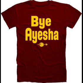 The final nail in her coffin are these "Bye Ayesha" shirts, a play on the classic quote from the film "Friday," which come in Cavaliers wine and gold.