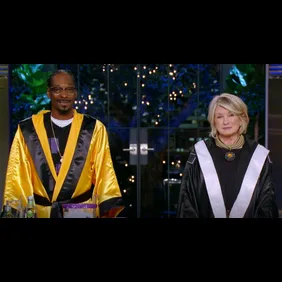 The first episode of "Martha and Snoop's Potluck Dinner Party" guest-starred Wiz Khalifa, Ice Cube, and Seth Rogen, who act as judges in a fiercly fought fried chicken cook-off between Martha and Snoop. Before the contestants and judges tuck in, Snoop delivers grace: “Oh Lord, we thank thee most high, so please do listen. We’re about to eat fried chicken that will make our fingers glisten. But watch out for Martha, because she’s about to lose… because Snoop’s chicken is soaked in chronic and booze.” Bars!