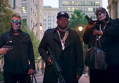Last month, Danger Mouse released a high-octane track from the Baby Driver soundtrack called "Chase Me" that hosts a trio of distinguished veterans in Killer Mike, El-P, and Big Boi. This morning, Danger Mouse shared a thrilling music video for the track that features cinema-grade production value and splices in footage from the film: Ansel Elgort (aka “Baby”) serves as El-P and Danger Mouse's getaway driver after a bank heist while Killer Mike and Big Boi roam the streets of ATL at night.
