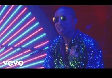 Setting themselves up to look like a 1960's folk rock group that passed through a diamond-filled car wash, we see the main players on the track do what they do best. Katy Perry writhes and coos as she's known to do, sporting an outfit that boasts no small amount of fringe. Pharrell Williams, looking suitably glitzy in a bedazzled jacket, occupies himself with the keyboard chords and exudes a quietly confident kind of cool throughout the video. Big Sean looks like the only one who's kind of out of place, relegated to sitting on some sound gear at the back of the stage area, waiting patiently for his verse to come up. Once it does though, he's ready to snap up the microphone and spit his bars. Harris plays the part of the bassist rather stoically, not really hogging any camera time from any of his co-stars and content to let them be the focus of the show. With a shimmering neon background, it's a colorful interpretation of one of the summer's funkiest tunes.