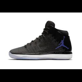 As you'd expect the 31s feature a predominately black build with patent leather attributes, a white midsole, icy blue outsole and the familiar "concord" color making an appearance on the jumbo-sized Jumpman.