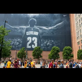 As it turns out, the building that the massive banner hangs from is the Sherwin-Williams headquarters and as of July 5th that LeBron image will be no more.
