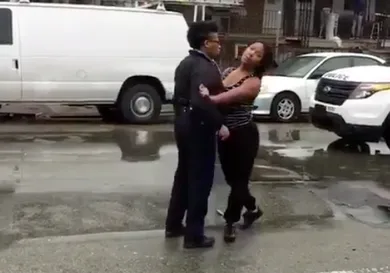 Footage shows the officer throwing Pendleton onto the ground. She then gets on top of Pendleton's torso and begins throwing many punches.