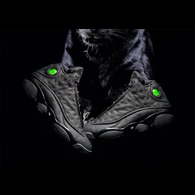 The Air Jordan 13 silhouette as a whole features attributes of a black cat, with it's "cat's eye" on the ankle and a sole that is designed to resemble a paw print, so it's surprising that Jordan Brand has waited this long to release a "Black Cat" inspired 13, but we're not complaining.