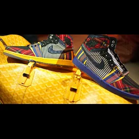 The plaid, striped and checkered 1s are an obvious nod to Sager's patented, quirky gameday apparel and include "Sager Vision" across the icy blue soles. Hopefully he'll give us an on-foot look at the sneakers while he's patrolling the sidelines next season.