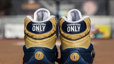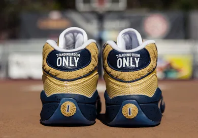 The EBC x Reebok Question Mid features a jersey-inspired mesh build on the upper, furry suede overlays on the toe and heel, and navy leather accents throughout which ties everything together. Additionally, the kicks feature special edition "Standing Room Only" text on the heel, signifying the over-capacity crowd at the Rucker on that night 20 years ago.