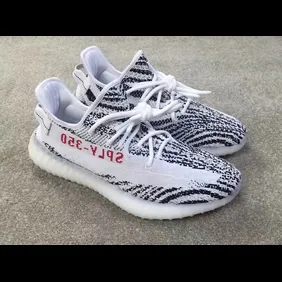 This zebra looking pair features the pull tab on the heel which was present in the original batch of 350s but has since been eliminated on the 350 V2. Although, we don't think that'll be a major selling point either way, these kicks are going to sell out whether they have a heel tab or not. The streak across the primeknit upper and the "SPLY-350" remains true to the other 350 V2s that we've seen thus far.