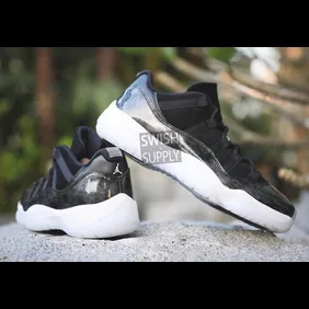 Early images of the "Barons" Air Jordan 11 Low have recently surfaced on the 'net and just like previous Air Jordans that share the Barons moniker, the kicks feature a black, white and grey construction. Although, the grey utilized is much darker than we expected. Additionally, reports suggest the dark grey patent leather featured on this pair of low-top 11s is similar to the design seen on the "72-10" joints.