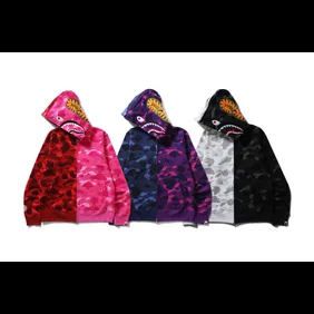 Bape is returning to one of its most popular designs with their latest clothing collection, which only consists of three hoodies. Back in the late 2000s, the full zip Bape hoodies were among the most coveted streetwear times, and designs would incorporate the full-zip of the hood. That birthed the shark design, which returns for this collection.