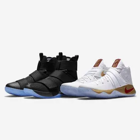 Dubbed the "Four Wins" Pack, Nike will be releasing a collection of two-sneaker packages featuring the Kyrie 2 and Zoom Soldier 10 that were worn by Kyrie and LeBron during the NBA Finals. The first "Four Wins" Pack will be releasing tomorrow, October 22nd, and will include the two kicks that Kyrie and LeBron laced up in Game 3.