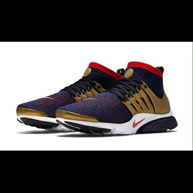 One such sneaker that is drawing on inspiration from the upcoming Olympic games is the Nike Air Presto Ultra Flyknit. Yes, that's a mouthful. But if you can get through the sneaker's lengthy name, you'll appreciate the greatness of this gold medal edition which features a blend of navy and red flyknit and gold accents throughout.