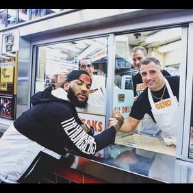 A couple of days ago, The Game was in Brooklyn shooting the "Pest Control" music video, and it turns out he performed "Pest Control" later at a show in Reading, PA. "Fuck Meek Mill," he told the crowd before dropping the diss track. He also made a special effort to stop in Meek (and Sigel's) hometown while en route to Reading. He enjoyed a cheesesteak at the famed Geno's Steaks, and after leaving the restaurant, he shared a video of himself listening to the same song Sigel would perform the next night.