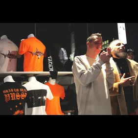 Vibe attended the release party for the clothes, and asked him few questions about his choices for the clothing line. He called out the shark shirt in particular as important to him, because his “girlfriend made the artwork behind the “Shark Shirt,” for which all the proceeds are donated to Oceans Unite to keep sharks from getting killed from finning.” Turns out Dean is an animal rights activist too.
