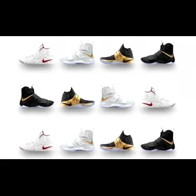 The sneakers featured on Nike's customizing site are those worn during Games 6 & 7; the Kyrie 2s are dubbed "The Shot" and LeBron's Zoom Soldier 10s are called "The Block."
