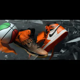 Both kicks are inspired by the orange and black jersey that Michael Jordan wore during an exhibition game in Italy in which he threw down a dunk that broke the backboard.