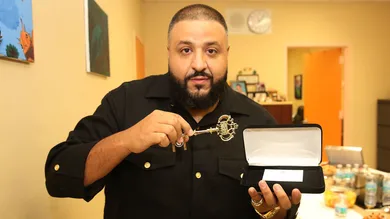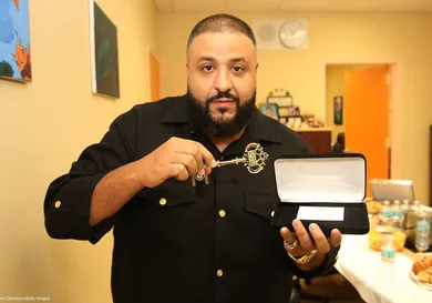 Keeper of the Keys DJ Khaled was honored with the key to Miami from Mayor Tomas Pedro Regalado for his donations to Miami’s Citrus Grove Middle School’s music department during the Revolt Music Conference.