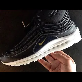 Leaked images of the Riccardo Tisci x Nike Air Max 97 have recently hit the net, showcasing the sneaker like we've never seen it, featuring an extending ankle collar. Contrasting white stitching bounces off the black leather build, while a tiny gold swoosh adds some flavor to the neutral sneaker.