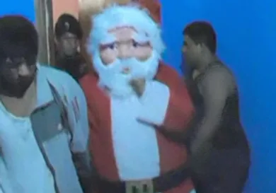 The Santas had their guns drawn before entering the drug house, which is allegedly used to distribute cocaine to gangs and to serve addicts. One can see the jolly white-bearded figures leading a number of suspected gang members out of the premises with their hands cuffed behind their backs. Four arrests were reported at the scene, with each of the suspects alleged to be part of the same "Pinto" clan.