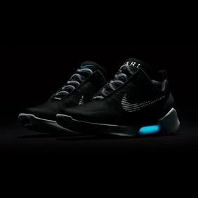 The kicks will initially be available in a "Black/White-Blue Lagoon" colorway sporting "E.A.R.L" on the tongue which serves as an acronym for Electro Adaptive Reactive Lacing. The "laces" are actually nylon bands which contract and loosen. The blue portion of the midsole lights up for a brief moment when the auto-lacing system is engaged.