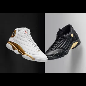The 1998 Defining Moments Pack will feature a white/gold Air Jordan 13 with a commemorative "98" hologram as well as "They Can't Win Until We Quit," text split on the insides of the tongues. The black and gold Air Jordan 14 features a tumbled leather upper with a "98" etched into the heel in place of the traditional "23."