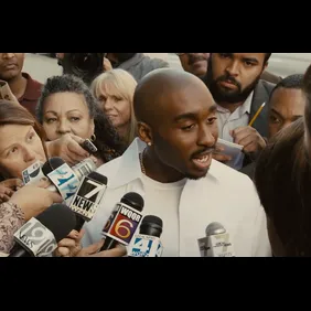 "We got a big platform," Tupac (portrayed by Demetrius Shipp, Jr.) tells the Notorious B.I.G. (portrayed by Jamal Woodard). "Use that platform to make change."