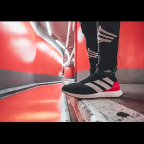 The special edition "Red Limit ACE 16+" UltraBoost features a black Primeknit upper and red heel counter from Adidas Soccer’s ACE 16+ PURECONTROL– the world’s first high-performance laceless soccer cleat. Additionally, the kicks are merged with the familiar Boost technology used in Adidas Running products to deliver a sleek look along with optimum comfort.