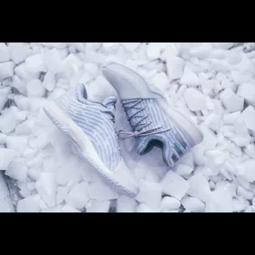 Taking design cues from winter’s harshest elements, the Adidas Harden Vol. 1 "13 Below Zero" features radiant frost treatment on the three stripes and torsion plate. White and gray Primeknit highlight the upper while a full-length BOOST TPU wrap and white leather shroud cap off the chilling tribute.