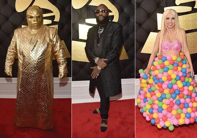 Highlights include lost of artists wearing extremely luxurious loafers, including Rick Ross, 2 Chainz and Fat Joe, a lot of exposed chests, from Lady Gaga and Halsey to Desiigner and an internet meme in the flesh. DJ Khaled’s son was adorably wearing matching blazers with his dad, an artist named Girl Crush made a dress out of the McDonald’s ball pit, and then Lil Yachty took her fit and applied it to his teeth. Schoolboy Q got out-dressed by his daughter. Last but (definitely) not least, Cee-Lo Green rolled through as his alter ego Gnarly Davidson, although he could just as easily have been auditioning to be the next Marvel movie villain.