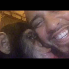 The video shows the chimp snuggling with French and planting a few kisses on his cheek upon her trainer's command. “My new girlfriend," French says. "On new boo alert. They mad at us princess."