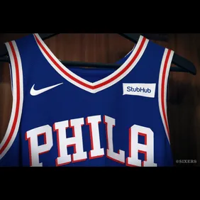 The Sixers' new Nike jerseys aren't all that different compared to their 2016 uniforms, except for the addition of a Nike swoosh and the "Stubhub" logo. Other than that, they remain true to form.