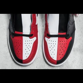 The "Chicago" Air Jordan 1 design takes on one half of the shoe while the other half, split right down the leather tongue, features the "Banned" look. The finished product is a sneaker that would have Air Jordan fans lining up down the block and around the corner.