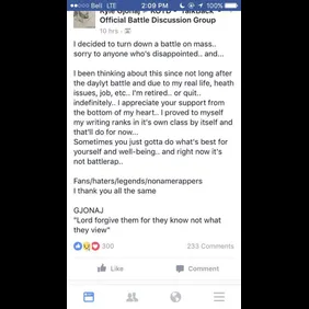 Gjonaj recently took to Facebook to announce that he is retired “or quit” indefinitely. Health, his job, and other issues were given as his reason for leaving. Battle rap retirements are rarely permanent, but we wish him the best whether he decides to return or not.