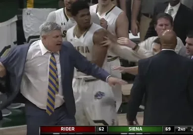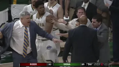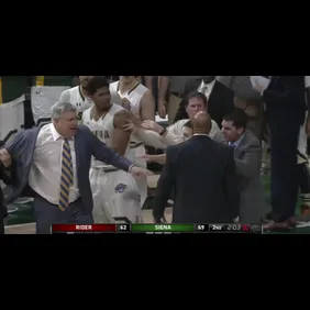 As a result, two players who threw punches during the melee (Siena's Marquis Wright and Rider’s Anthony Durham) were ejected from the game and both coaches got into a shouting match and needed to be pulled away from one another.