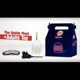 Burger King is here for all the couples who can’t afford a nice dinner. They’ve put together an “Adult’s Meal” for Valentine’s Day in Isreal. It still comes with a toy, just like it’s children’s counterpart, but the toy is meant for different kinds of fun.