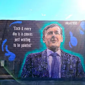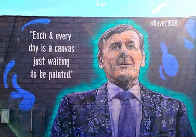 Both sports icons sit side by side on the brick wall in Los Angeles, which has turned into Jonas Never's own public canvas to remember the two beloved broadcasters.