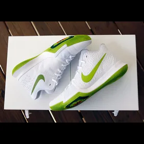 According to SoleCollector, the Mountain Dew x Nike Kyrie 3 "KARE KIT" is limited to just 32 sets and therefore won't be available in stores.