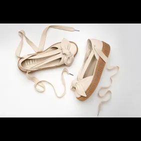 The sneakers feature the familiar chunky gum sole that was used on the Rihanna x PUMA Creeper, although they feature a bow on top and thick laces that can be tied around the ankle.