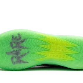 On the bottom of the shoe, you can find the word slime imprinted. On the toe cap, you can see the use of a slime effect in green. Inside the shoes, you can find a slime pattern again with the Puma logo on one side and the Nickelodeon slime wording on the other.