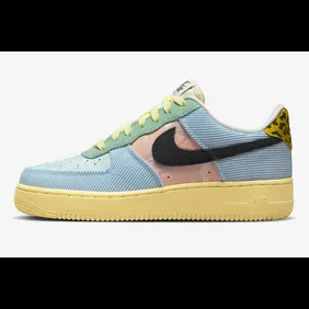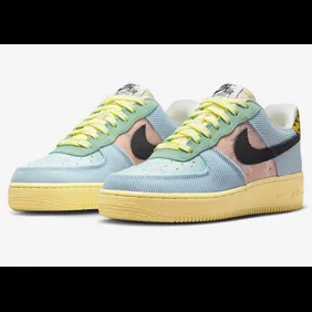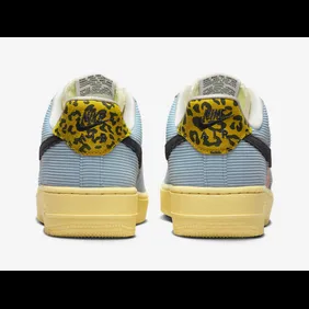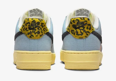 "Celestine Blue" is one of those motifs that will be coming to more than just the Nike Air Force 1 Low. Overall, it does make for a colorful look, and we think a lot of people will appreciate that. Firstly, this shoe has a plethora of colorful overlays throughout. We get some blue cordurow on the front and back of the shoe. Meanwhile, there are patches of green that run alongside the yellow laces. Moreover, the pink side panels and black Nike swoosh pair nicely together. One of the more interesting details is found on the back heel, thanks to the leopard-print overlay.