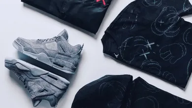 Check out the KAWS x Air Jordan 4 collab in the gallery above and see the apparel collection below.